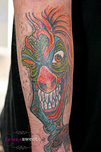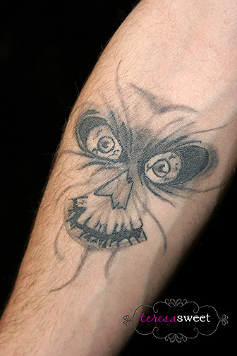 Aaron R. (from Westport, MA) said: He has approximately seven tattoos altogether. Some of the ideas for his tattoos were his (for example, the tattoo of an outline of a mudflap girl on his back) and some were ideas of the artists (freehand tattoo on arm of an abstract face). When I asked Aaron about the experience between Sin on Skin and the other tattoo studios he’s been to, he said “I was 200% happy with the results of Sin on Skin. I plan on getting more tattoos in the future from SoS because the atmosphere is so much better here than the other studios!”