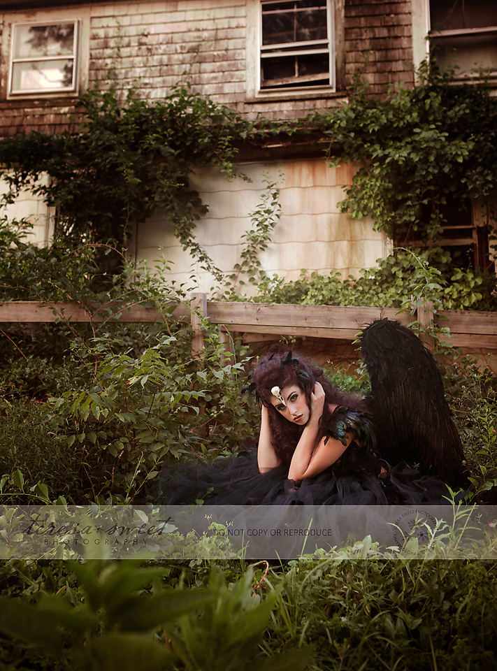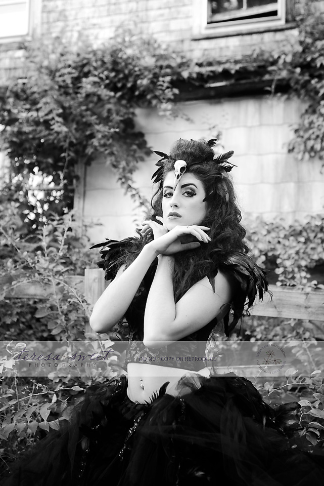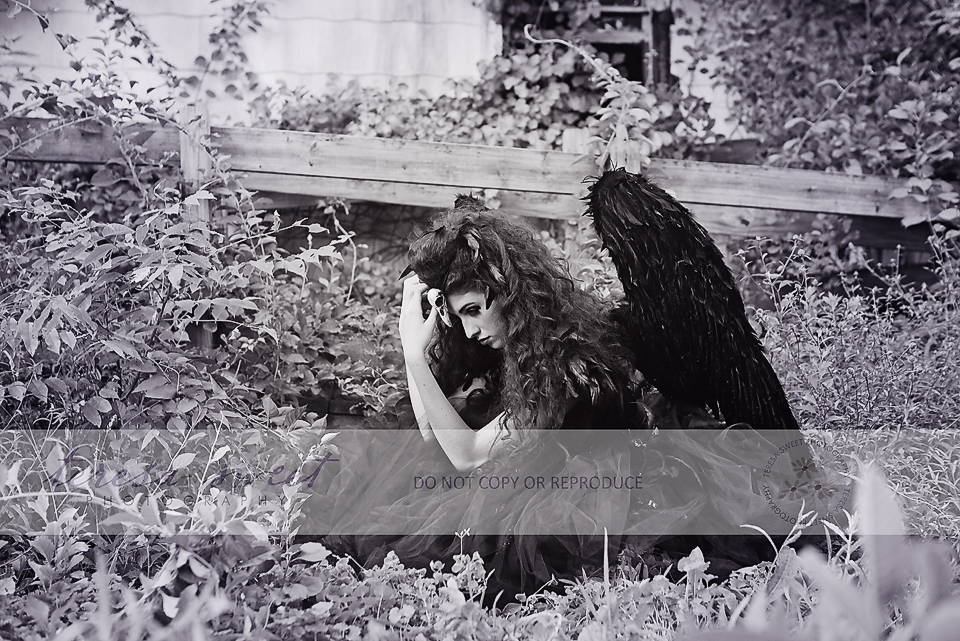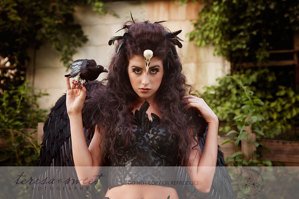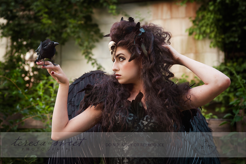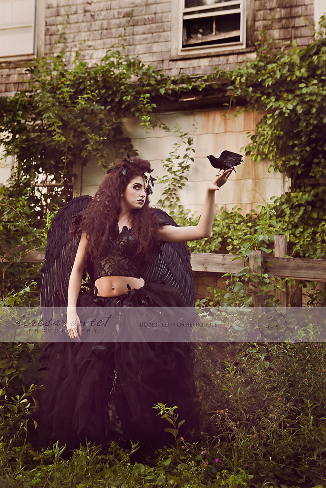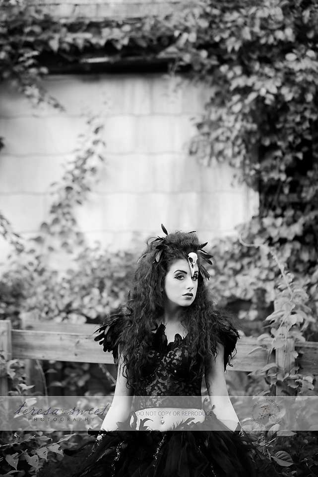 The first themed session that fit this was a “Raven” Inspired session. I knew exactly what I wanted. But planning and creating the outfit took some time. I have received many emails to create Inspired themed sessions to the public. Yes, I would be more than happy to offer them to you but keep in mind that every one will be unique to fit the style of the client and the vision that I can create. Please email me for more details.